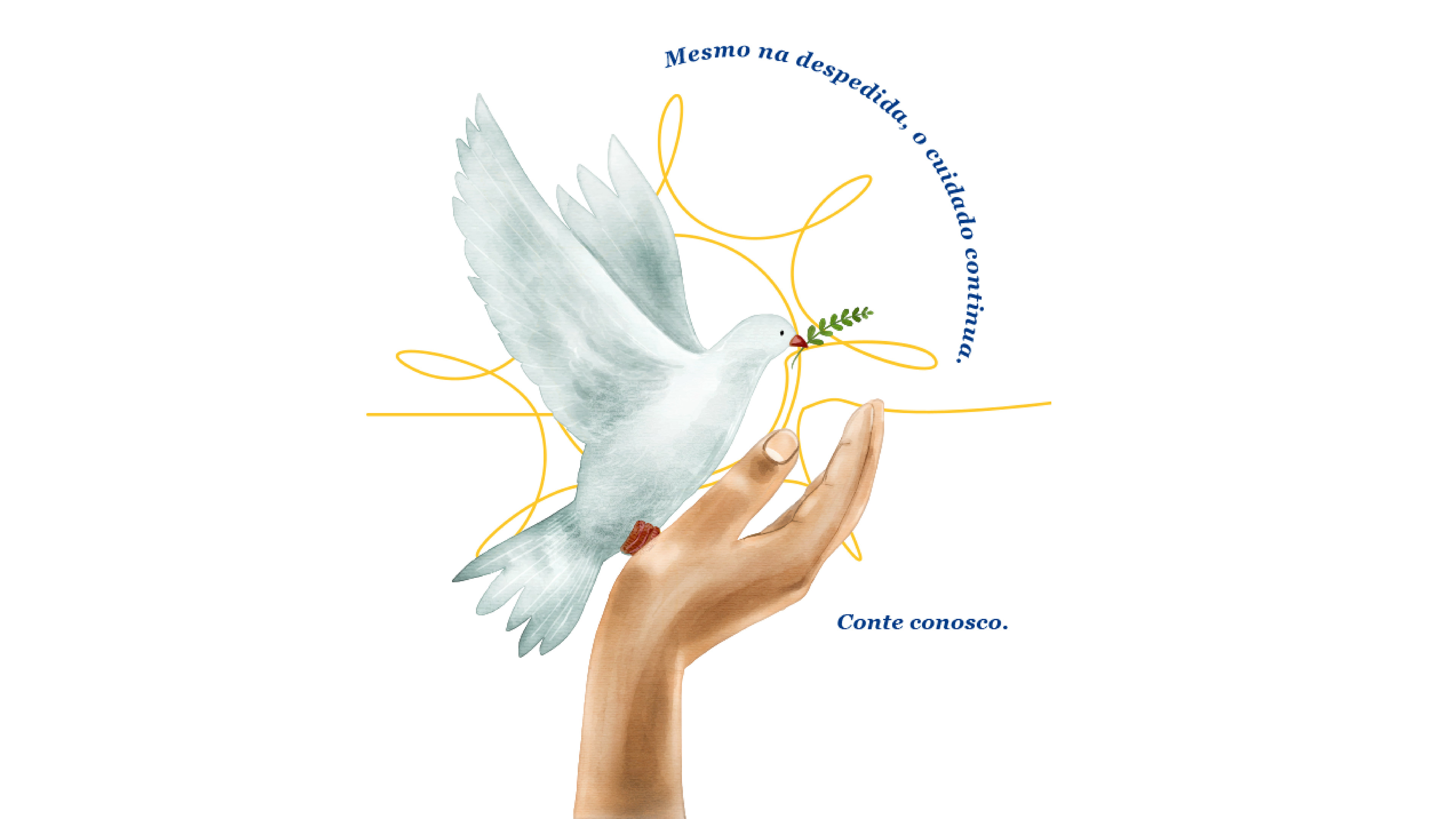 A Semiótica da Vida: 〰️ A Linha: A trajetória. ☀️ O Sol: O legado que fica. 🕊️ A Pomba: A paz na partida.